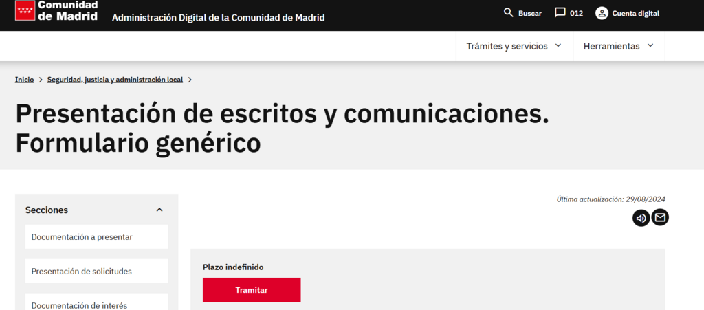 ESCRITOS DIRIGIDOS A CUALQUIER ORGANISMO DE LA COMUNIDAD DE MADRID.